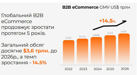 Давайте будемо чесними: світова економіка зараз не в найкращому стані. Світова організація торгівлі навіть переглянула свої прогнози — замість зростання на 3%, бачимо скорочення до 0.2%. Але ось парадокс: B2B e-commerce зростає на 14.5% щорічно!